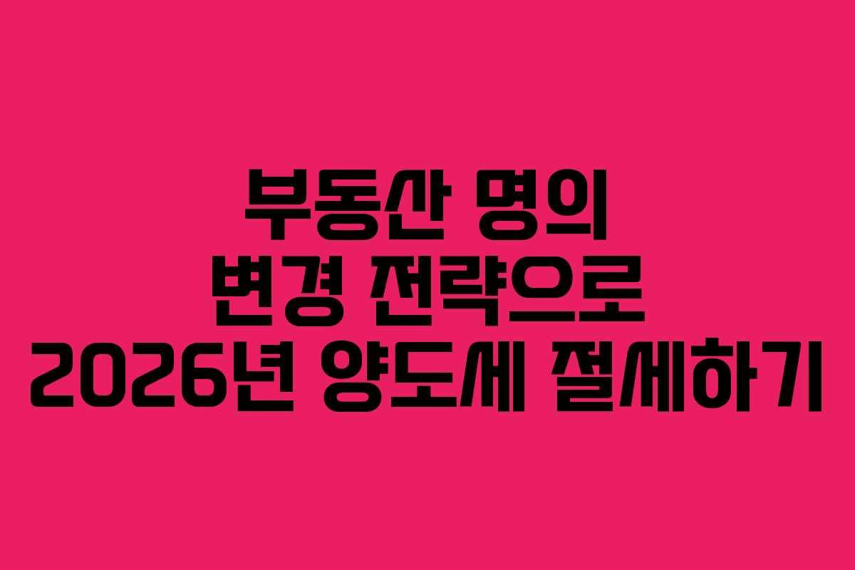 2026년 세법 개정은 부동산 관련 세금에 큰 변화를 가져올 수 있습니다. 따라서 명의 변경을 포함한 세무 계획을 수립할 때 영향을 미치는 요소를 충분히 고려해야 합니다.