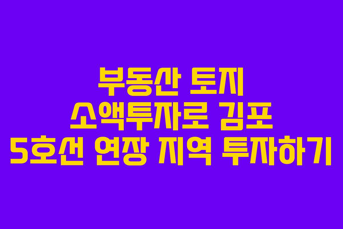 소액투자에 적합한 지역은 개발 호재가 있는 곳, 특히 교통망이 확장되는 지역이다. 현재 김포 5호선 연장 지역은 그런 예로, 앞으로의 가치 상승이 기대된다.