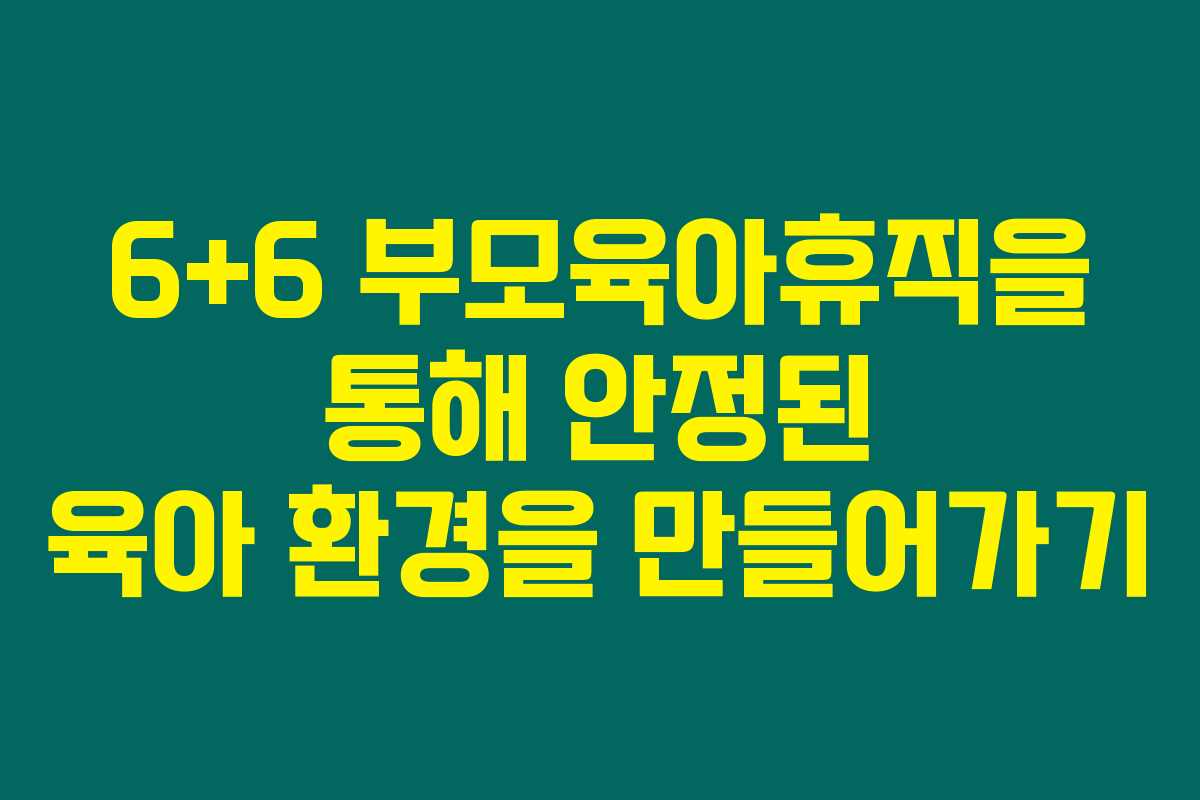 제가 알아본 바로는, 6+6 부모육아휴직제는 부모가 각각 6개월씩 육아휴직을 사용할 수 있도록 지원하는 제도예요. 이 제도는 자녀의 출생 후 1년 이내에 두 부모가 육아를 함께 지원할 수 있도록 환경을 조성하기 위해 마련된 것이죠. 그래서 두 부모가 번갈아 가며 최대 12개월의 육아휴직을 활용할 수 있다는 점에서 많은 부모의 관심을 받고 있어요.