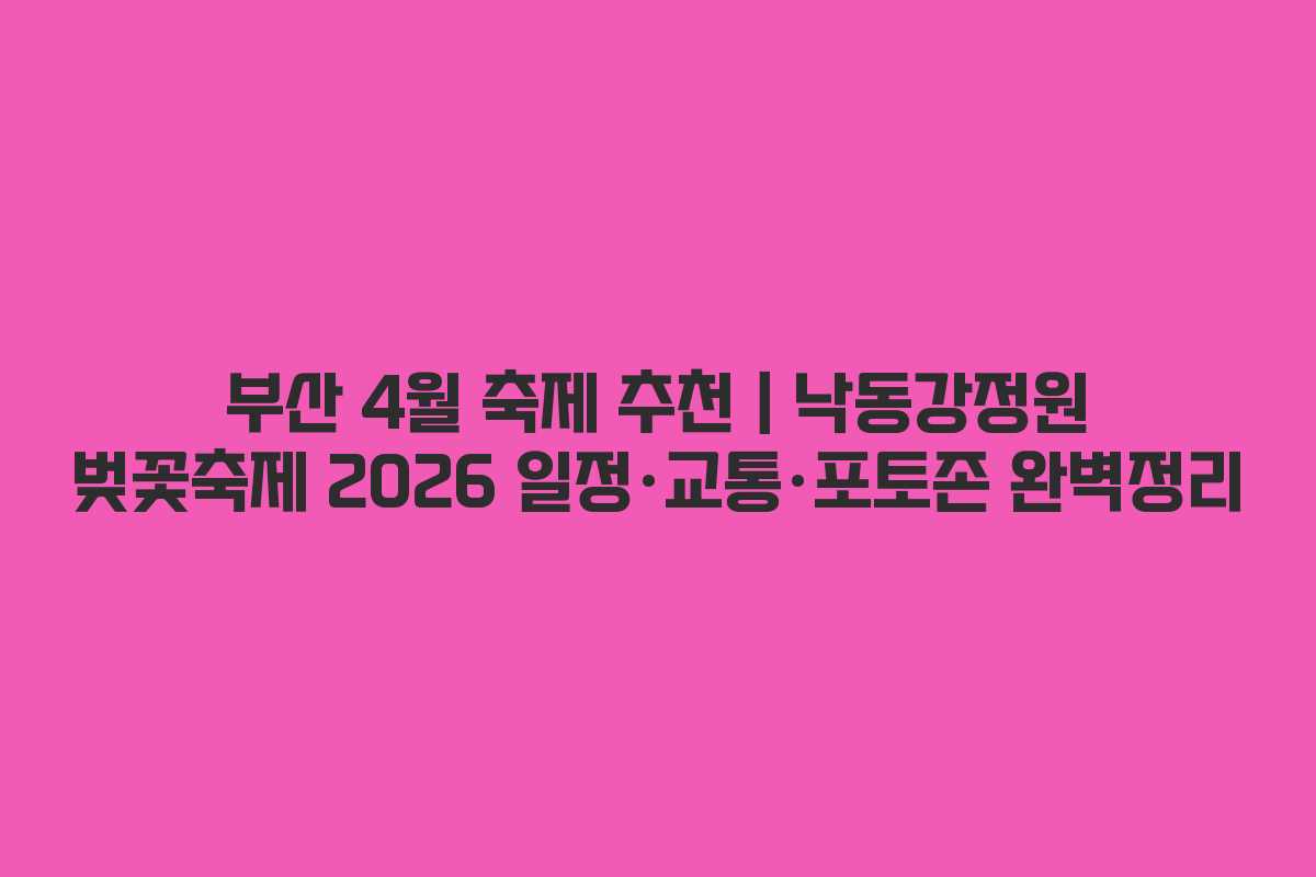 부산의 4월은 벚꽃이 만개하는 특별한 시기입니다. 그 중에서도 낙동강정원 벚꽃축제는 부산 사상구에서 열리는 대표적인 봄 행사로, 매년 많은 인파가 몰리는 인기 있는 축제입니다. 이번 글에서는 2026년 개최될 낙동강정원 벚꽃축제의 일정, 교통편, 포토존 등을 자세히 안내하겠습니다.