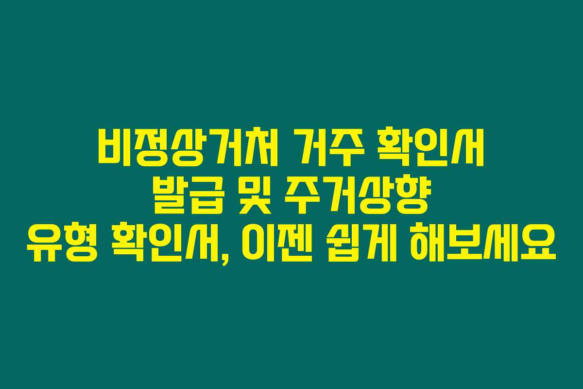 제가 알아본 바로는 비정상거처에 거주하는 분들이 필요한 서류를 준비하는 것이 생각보다 간단할 수 있답니다. 특히, 비정상거처 거주 확인서와 주거상향 유형 확인서는 이주 지원과 전세자금 대출을 위해 꼭 필요한 서류인데요. 아래를 읽어보시면 이 과정을 보다 명확하게 이해하고, 필요한 서류를 손쉽게 준비하는 방법을 알게 될 거에요.