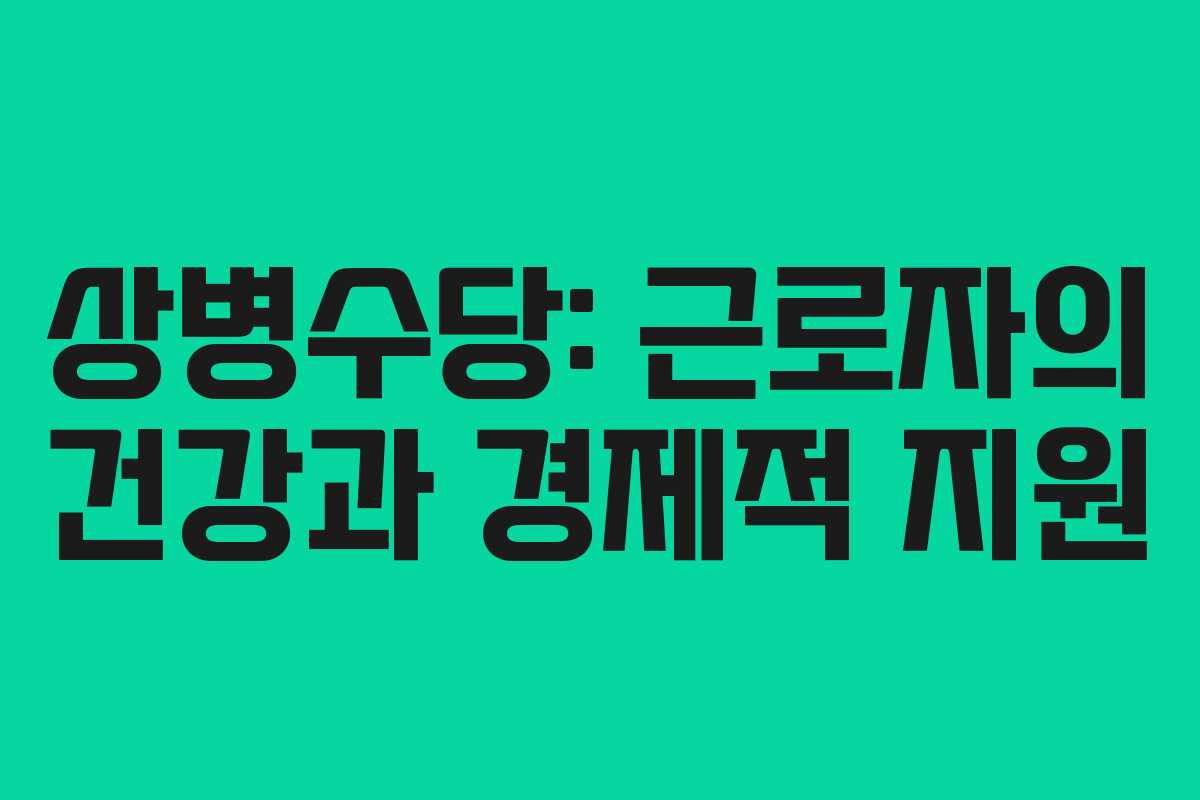 근로자가 아플 때 느끼는 서러움은 경제적인 부담과 함께 겹치기 마련입니다. 이러한 고통을 덜기 위해 정부는 아플 때 경제적 지원을 제공하는 상병수당 제도를 도입하기로 하였습니다.