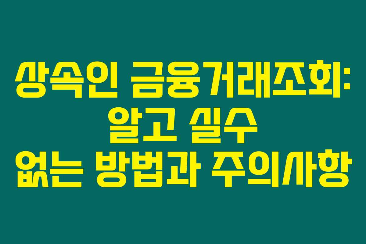 상속인 금융거래조회는 고인의 재산을 투명하고 간편하게 확인할 수 있는 좋은 서비스입니다. 이 서비스를 통해 상속 절차를 보다 쉽게 진행할 수 있으니, 관심 있는 분들은 꼭 이용해보시길 추천드립니다. 다음에도 유용한 금융 관련 정보로 찾아올게요!