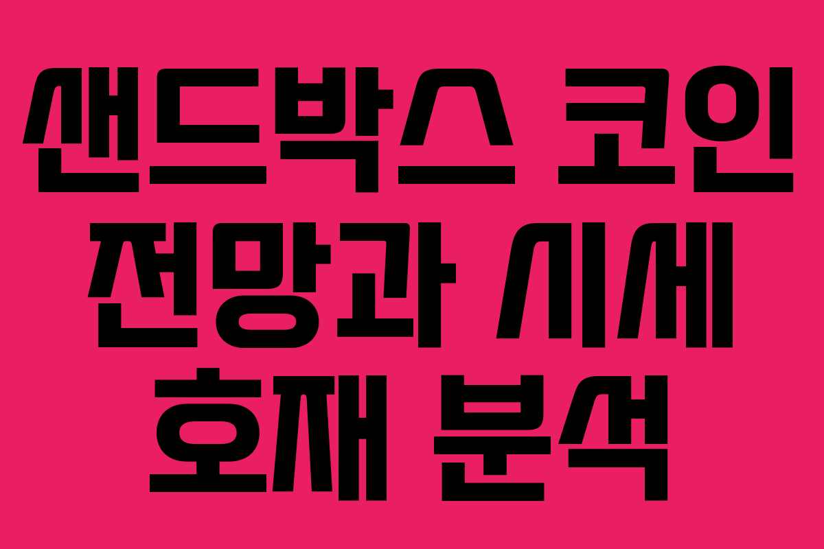 샌드박스 코인은 이더리움 블록체인 기반의 ERC-20 토큰으로, 디지털 자산의 생성과 거래를 지원하는 플랫폼입니다. 이번 글에서는 샌드박스 코인의 시세, 전망, 그리고 호재에 대해 자세히 알아보겠습니다.