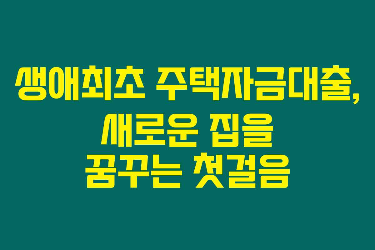여러분의 생애 첫 주택 구입, 생애최초 주택자금대출로 멋진 시작을 만들어보세요! 이 기회를 놓치지 않고 잘 활용하면, 새 집에서 행복한 기억을 쌓을 수 있을 거에요.