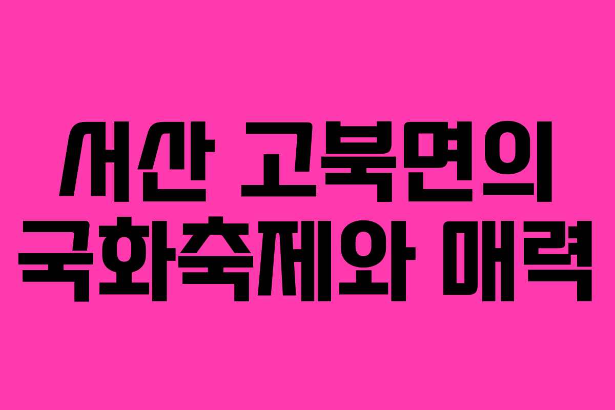 매년 가을, 고북면에서는 서산시의 대표축제인 국화축제가 열립니다. 올해 축제는 11월 초로 예정되어 있으며, 행사 준비가 한창입니다. 다양한 조형물들이 국화꽃으로 장식될 예정이며, 이는 방문객들에게 특별한 볼거리를 제공합니다.