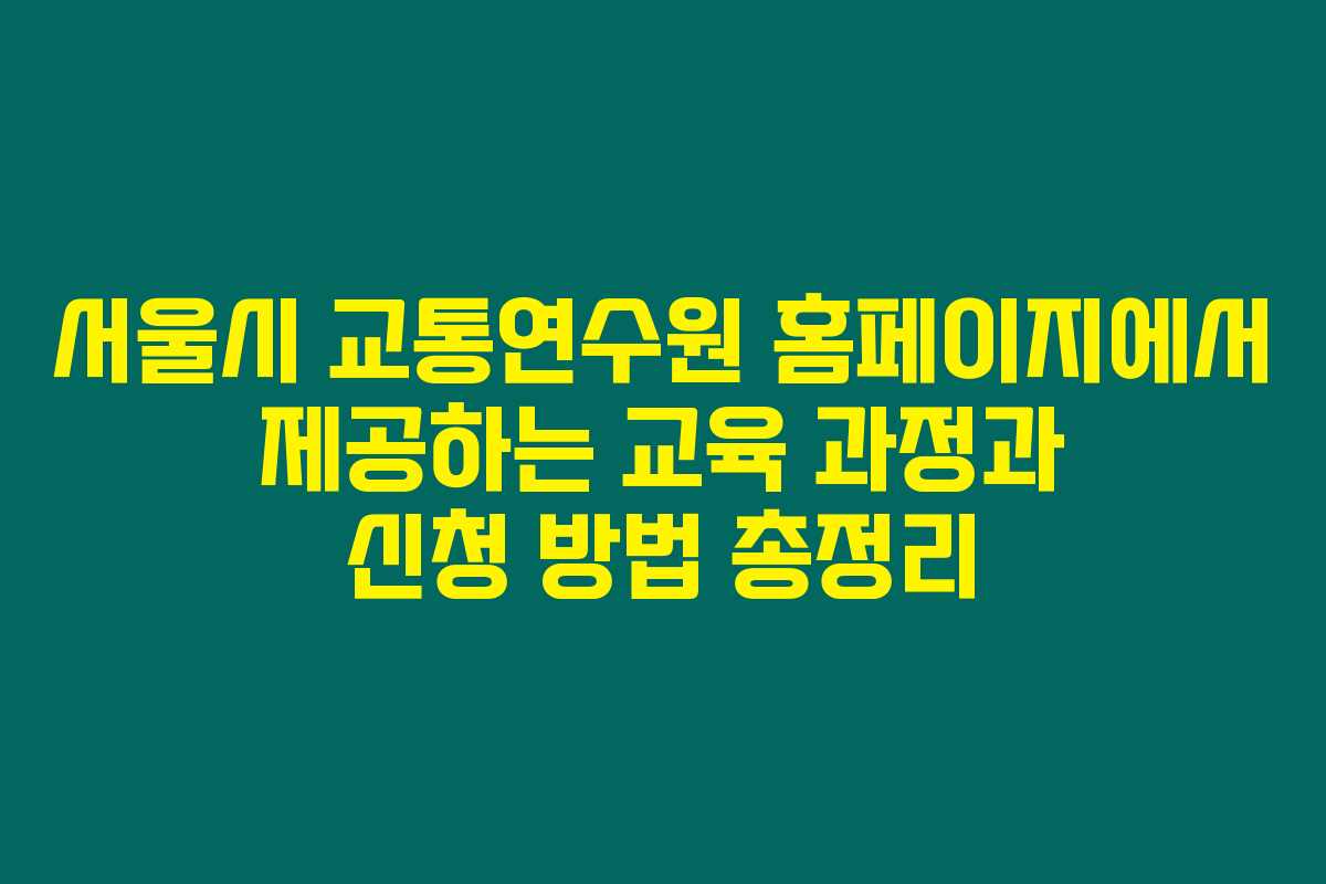 서울시 교통연수원 홈페이지에서 제공하는 교육 과정과 신청 방법 총정리