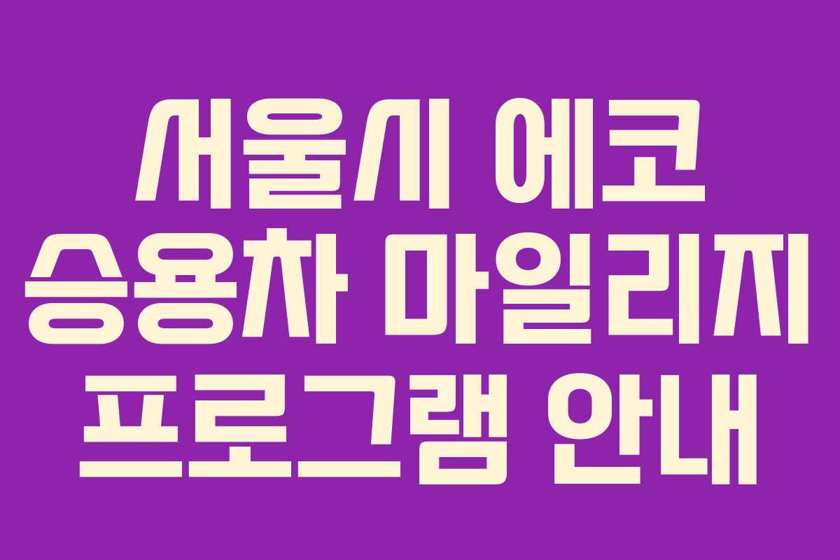 서울시는 시민들이 자동차 운행거리를 줄이고 온실가스 및 미세먼지 감축에 기여하기 위해 에코 승용차 마일리지 프로그램을 운영하고 있습니다. 이 프로그램에 참여하면 적립된 마일리지를 세금, 상품권, 아파트 관리비 등 다양한 용도로 활용할 수 있습니다. 서울시에 등록된 12인승 이하의 승용차 및 승합차 소유자는 이 프로그램에 쉽게 가입할 수 있습니다.