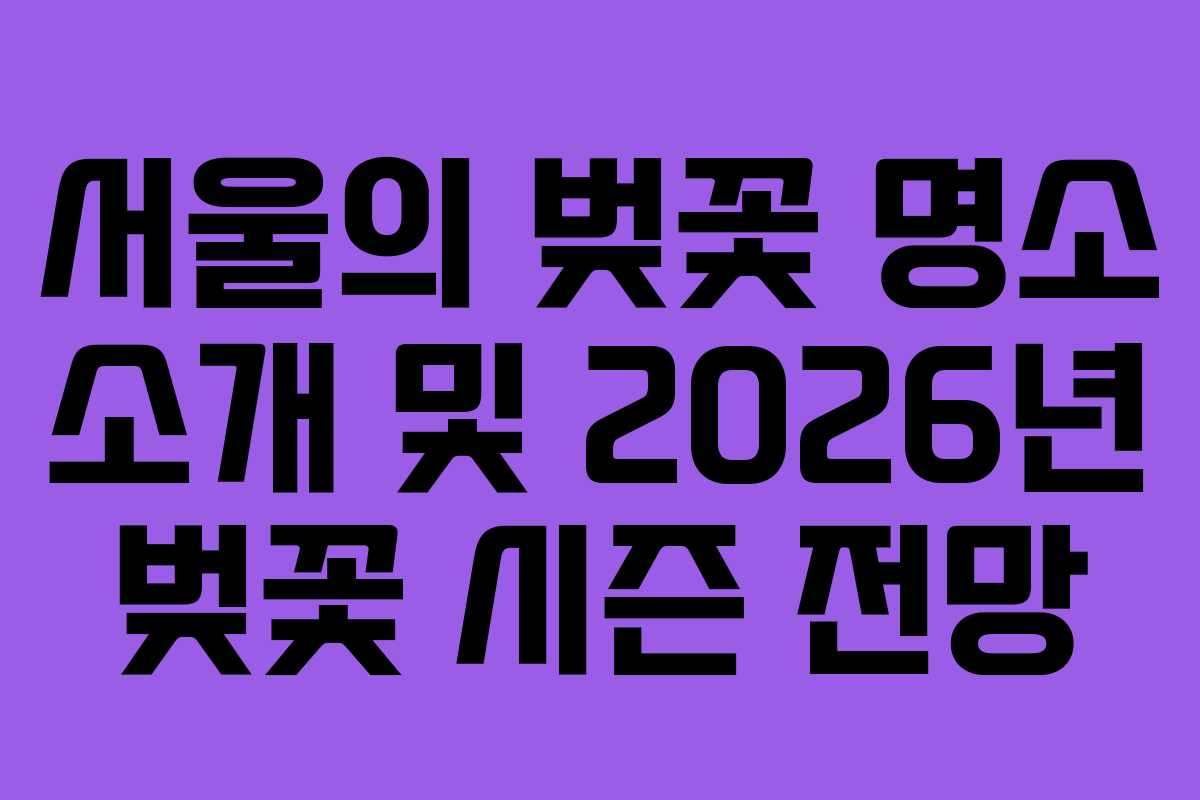 서울에서 봄의 시작을 알리는 벚꽃은 매년 많은 사람들에게 큰 기쁨을 선사합니다. 2026년에도 벚꽃 시즌은 특별한 의미를 지니고 있으며, 이를 즐기기 위한 명소를 미리 알아보는 것이 좋습니다. 이번 시즌에는 서울 전역에서 아름다운 벚꽃을 만끽할 수 있는 다양한 장소가 있습니다. 벚꽃이 만개하는 시점은 2026년 3월 20일부터 24일 사이로 예상되며, 이 시기를 놓치지 않기 위해 미리 계획을 세우는 것이 중요합니다.