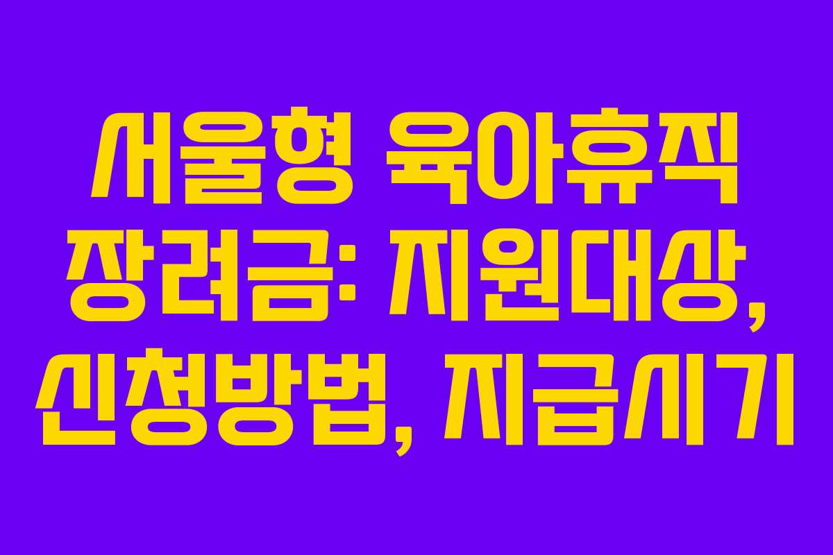 서울형 육아휴직 장려금은 저출산 문제를 해결하기 위한 ‘엄마아빠 행복 프로젝트’의 일환으로, 육아휴직을 이용하는 부모에게 경제적 지원을 제공합니다. 이 프로그램은 서울 거주 부모의 육아 부담을 덜어주고, 가족 친화적인 근무 환경을 조성하는 데 기여하고자 합니다.