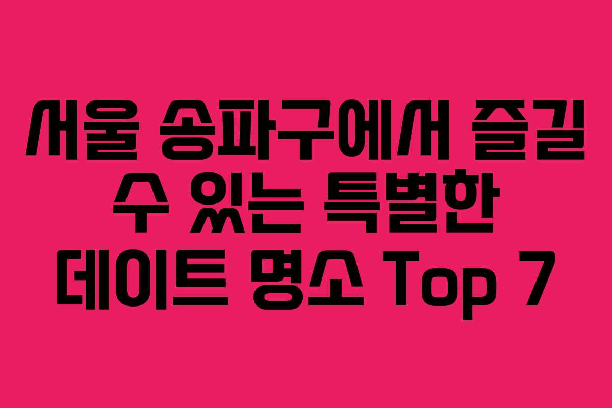 서울 송파구는 연인들이 특별한 순간을 만들기에 완벽한 장소입니다. 이 지역은 다양한 데이트 명소가 밀집해 있어, 여러분의 데이트에 특별한 추억을 더할 수 있습니다. 이번 글에서는 송파구에서 꼭 가봐야 할 7곳을 소개하며, 각각의 분위기와 가격 정보를 상세히 안내하겠습니다.
