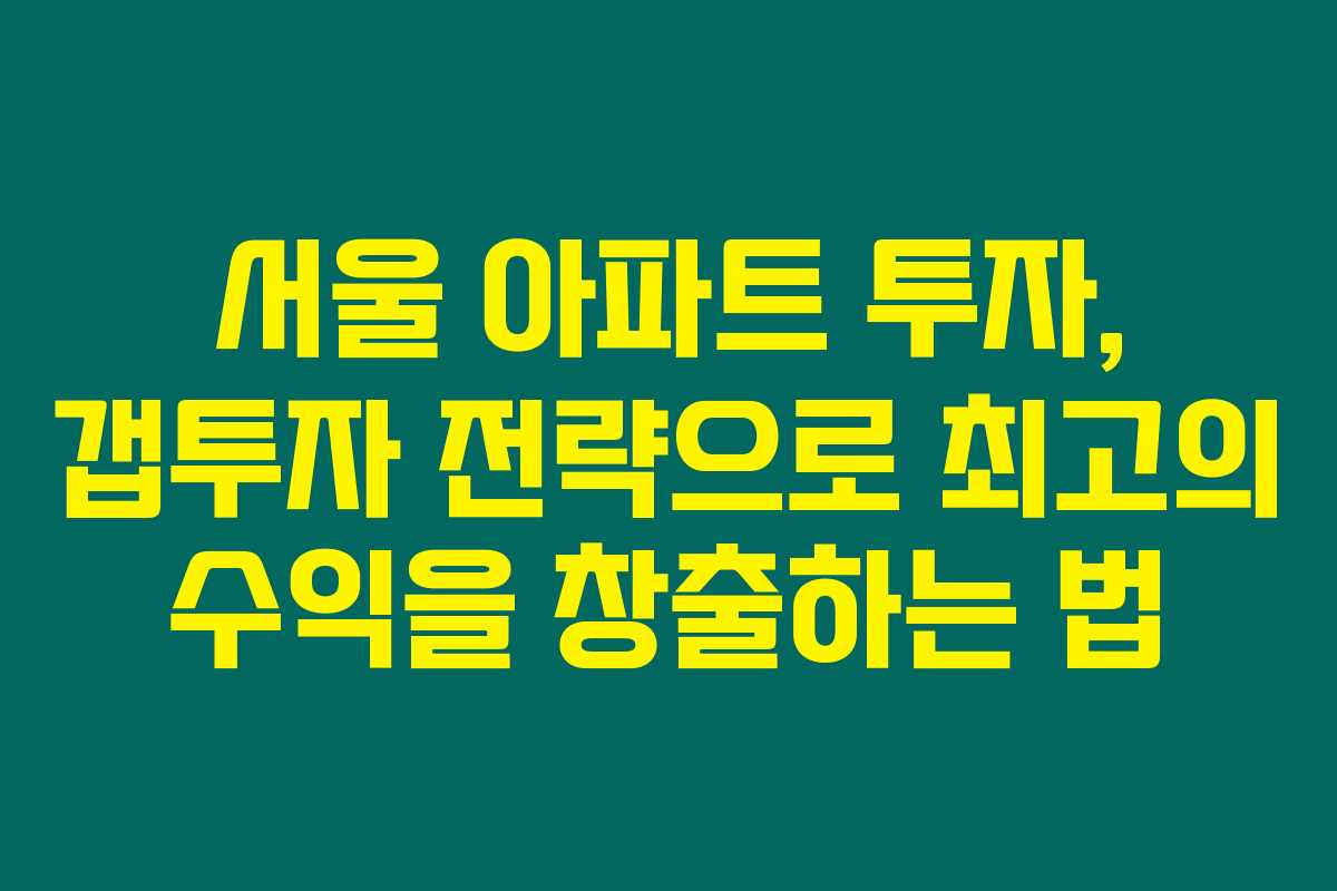 제가 직접 경험해본 결과로는 서울 아파트 투자와 갭투자가 점점 많은 이들의 주목을 받고 있어요. 서울은 국가의 수도이자 경제의 중심지로, 안정적인 임대 수익과 자산 가치 상승이 기대되는 지역입니다. 아래를 읽어보시면 서울 아파트 투자에 대한 상세한 분석과 전략을 통해 여러분의 투자가 더욱 효과적으로 이루어질 수 있도록 도와드리겠습니다.