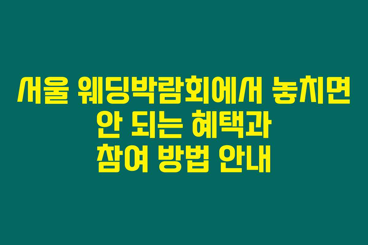 많은 신혼부부에게 소중한 순간을 완벽하게 준비할 기회인 웨딩박람회가 서울에서 열립니다! 이번에는 웨딩박람회 일정과 함께 다양한 혜택, 참여 방법, 그리고 준비사항을 소개할게요. 아래를 읽어보시면 결혼 준비에 큰 도움이 될 것입니다, 기대해도 좋아요!