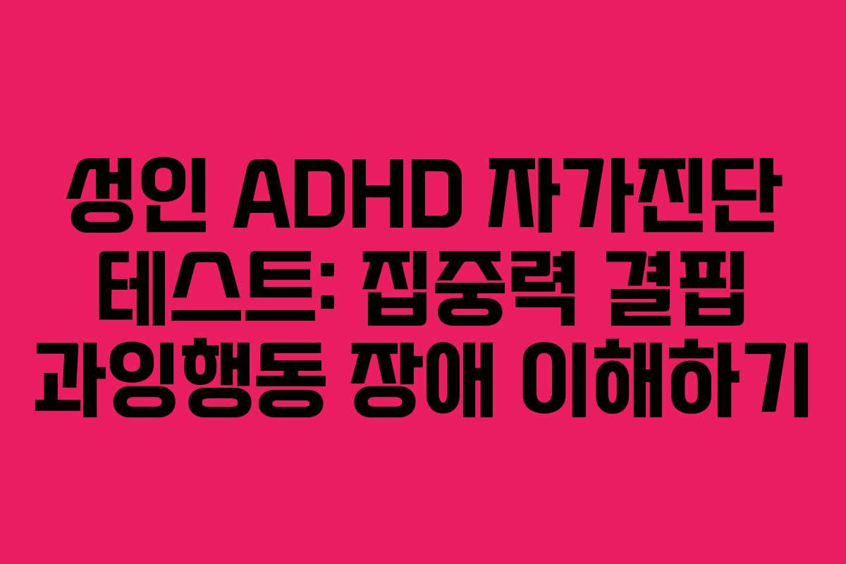 최근 많은 사람들이 주의력 결핍 과잉행동 장애(ADHD)에 대한 관심을 보이고 있습니다. 일상 생활에서 쉽게 집중력을 잃거나 산만해지는 경험을 하면서 자신이 ADHD일지 고민하는 경우가 많습니다. ADHD는 단순한 집중력 저하를 넘어 다양한 증상을 동반하는 만큼, 자가진단 테스트를 통해 자신의 상태를 점검해보는 것이 유익할 수 있습니다.