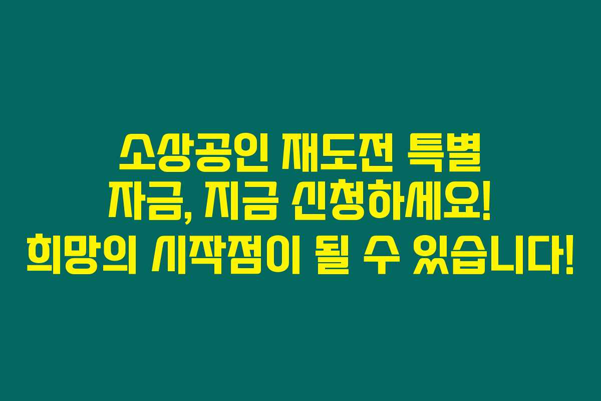 이처럼 소상공인 재도전 특별 자금은 재기와 성장의 또 하나의 기회를 제공합니다. 조건을 충족했다면, 주저하지 말고 준비하시고 신청해 보세요. 여러분의 새로운 도전을 응원합니다!