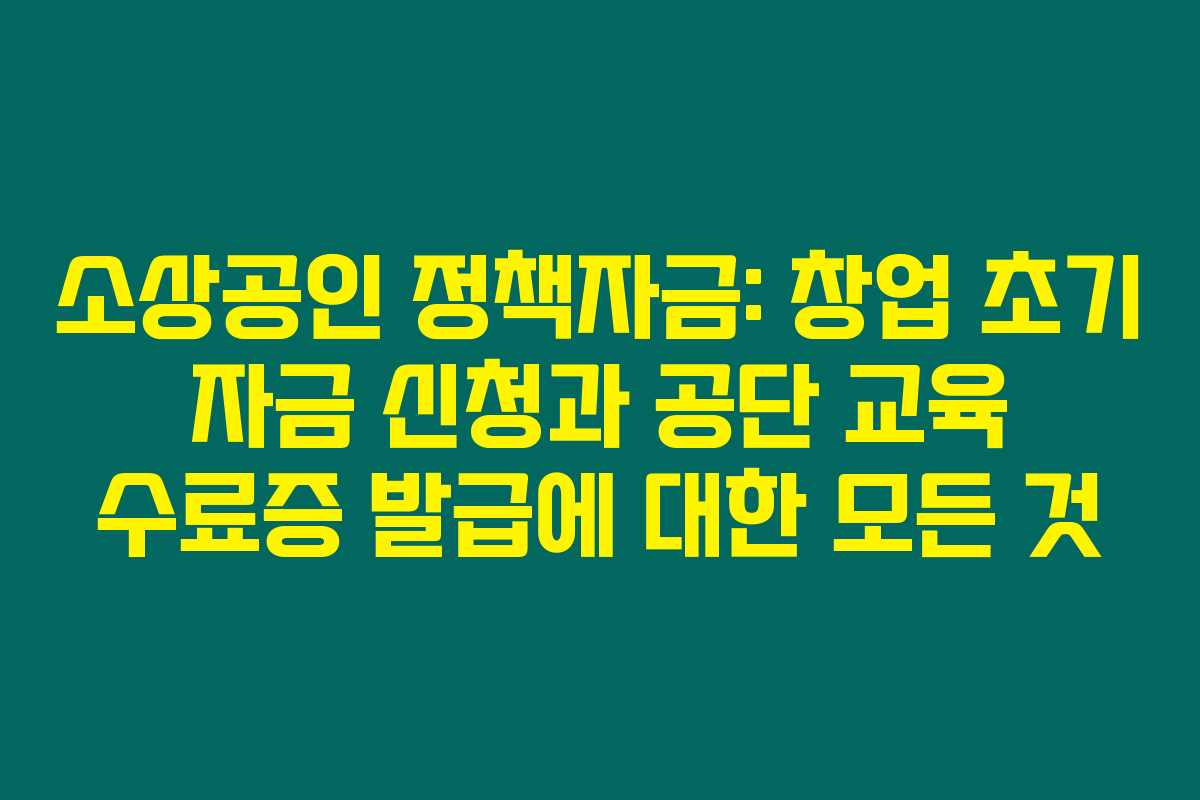 제가 리서치해본 바로는, 소상공인이 창업 초기 자금을 지원받기 위해선 여러 요건을 충족해야 합니다. 그중에서도 특히 공단 교육을 통해 수료증을 발급받는 것이 중요한데요. 창업 초기를 지원하는 정책자금은 많은 소상공인들에게 절실한 자원이죠. 아래를 읽어보시면 소상공인 정책자금을 신청하기 위한 과정과 공단 교육 수료증 발급 방법을 상세히 안내해 드릴게요.