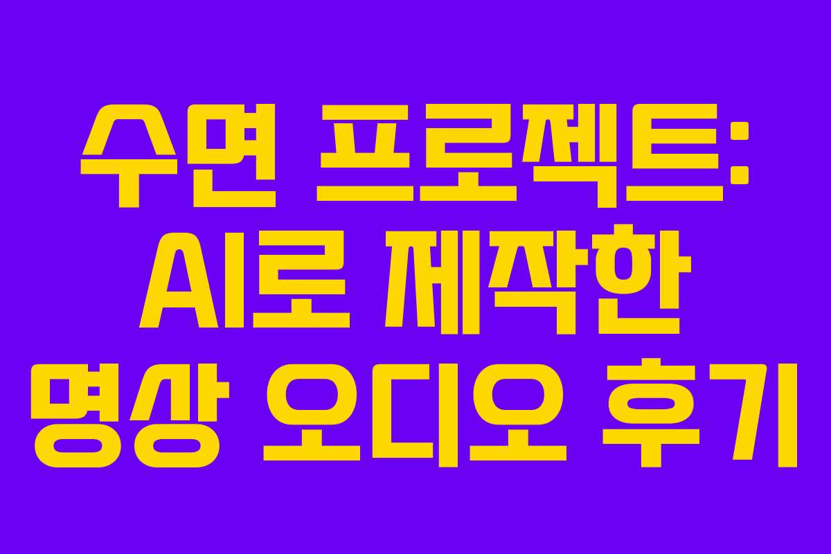 수면의 질은 우리 삶의 질을 결정짓는 중요한 요소 중 하나다. 최근 여러 연구를 통해 수면의 중요성이 더욱 부각되고 있으며, 이를 개선하기 위한 다양한 방법들이 소개되고 있다. 특히, AI 기술이 발전함에 따라 개인 맞춤형 수면 솔루션이 가능해졌고, 그 중 하나가 바로 AI를 활용한 명상 오디오 제작이다. 이번 글에서는 수면법과 AI 제작 과정을 통해 얻은 경험과 결과물을 공유하겠다.