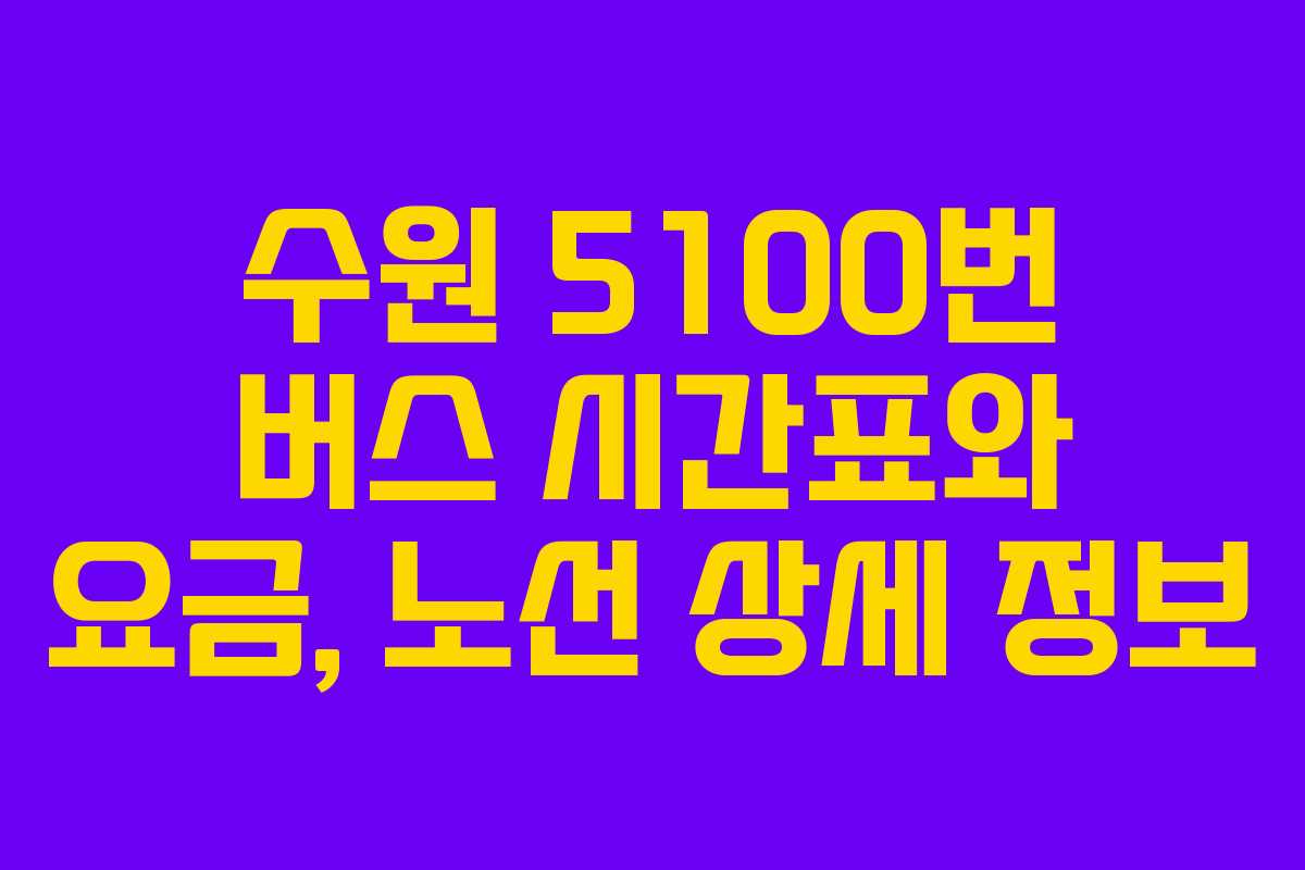 5100번 버스는 수원과 강남을 연결하는 중요한 교통수단으로, 다양한 혜택과 편리한 운영으로 많은 이용자들에게 사랑받고 있습니다. 이러한 정보들을 바탕으로 효율적인 대중교통 이용이 이루어질 수 있기를 바랍니다.