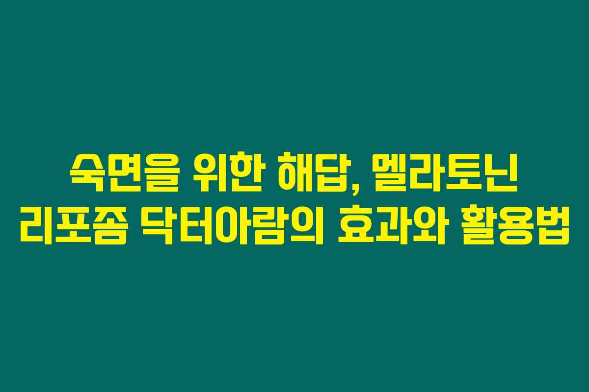 여러분, 편안한 밤의 수면은 삶의 질에 큰 영향을 미친다는 사실 알고 계신가요? 특히, 멜라토닌 리포좀 닥터아람은 숙면의 비밀을 간직한 제품으로 주목받고 있어요. 아래를 읽어보시면 이 멜라토닌 제품의 효능과 활용법, 그리고 소비자들이 주목할 만한 점들을 자세히 알아보실 수 있습니다.