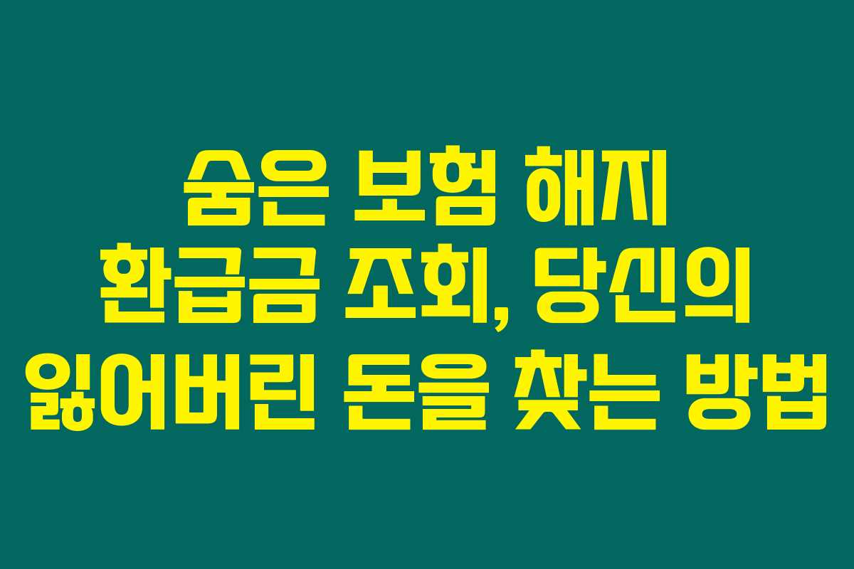 숨은 보험 해지 환급금 조회, 당신의 잃어버린 돈을 찾는 방법