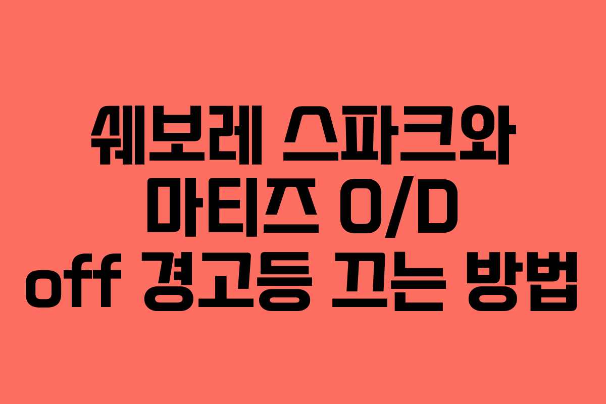 자동차를 운전하다 보면 예상치 못한 경고등이 켜져 당황스러울 수 있습니다. 특히 쉐보레 스파크나 마티즈의 O/D(Over Drive) 경고등이 켜졌을 때, 어떻게 대처해야 할지 고민이 될 수 있습니다. 이번 포스트에서는 O/D 경고등의 의미와 이를 해제하는 방법에 대해 상세히 설명하겠습니다.