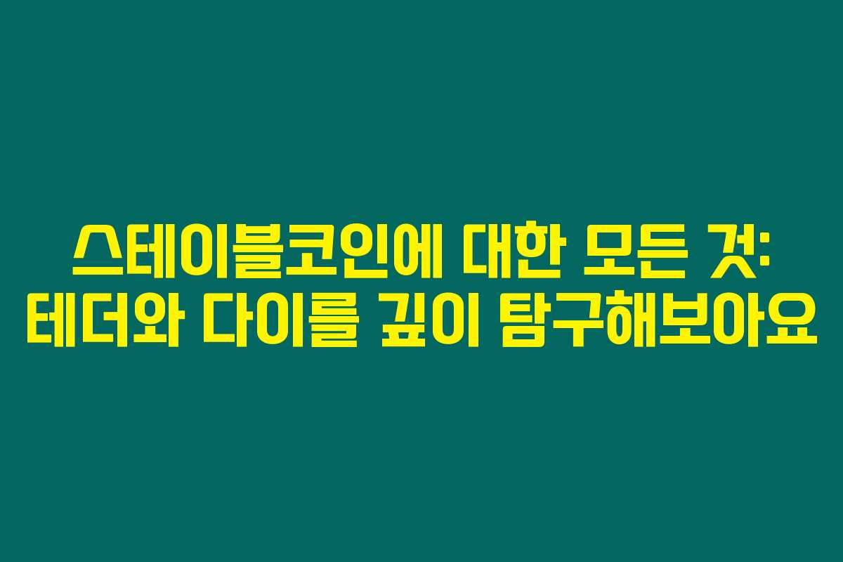 제가 직접 경험해본 결과로는, 최근의 암호화폐 시장에서는 특히 스테이블코인이 투자의 안전망으로 주목받고 있어요. 스테이블코인은 변동성이 큰 암호화폐에서 발생할 수 있는 리스크를 줄여주면서도 디파이(탈중앙화 금융) 서비스를 통해 금융 거래를 원활하게 해주는 중요한 역할을 하고 있습니다. 아래를 읽어보시면 스테이블코인이란 무엇인지, 어떤 종류가 있는지, 그리고 테더와 다이는 어떤 면에서 특별한지 자세히 알 수 있습니다.