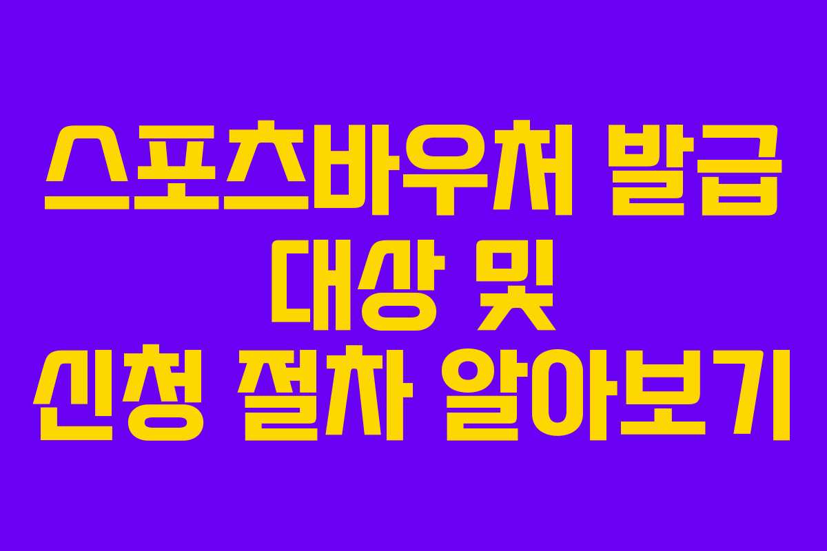 스포츠바우처는 주로 저소득층 가구의 아동 및 청소년으로, 특정 연령대와 소득 기준을 충족해야 합니다. 대체로 만 6세 이상 18세 이하의 아동 및 청소년이 해당되며, 가구 소득이 기준 중위소득 이하일 경우 신청 가능합니다.