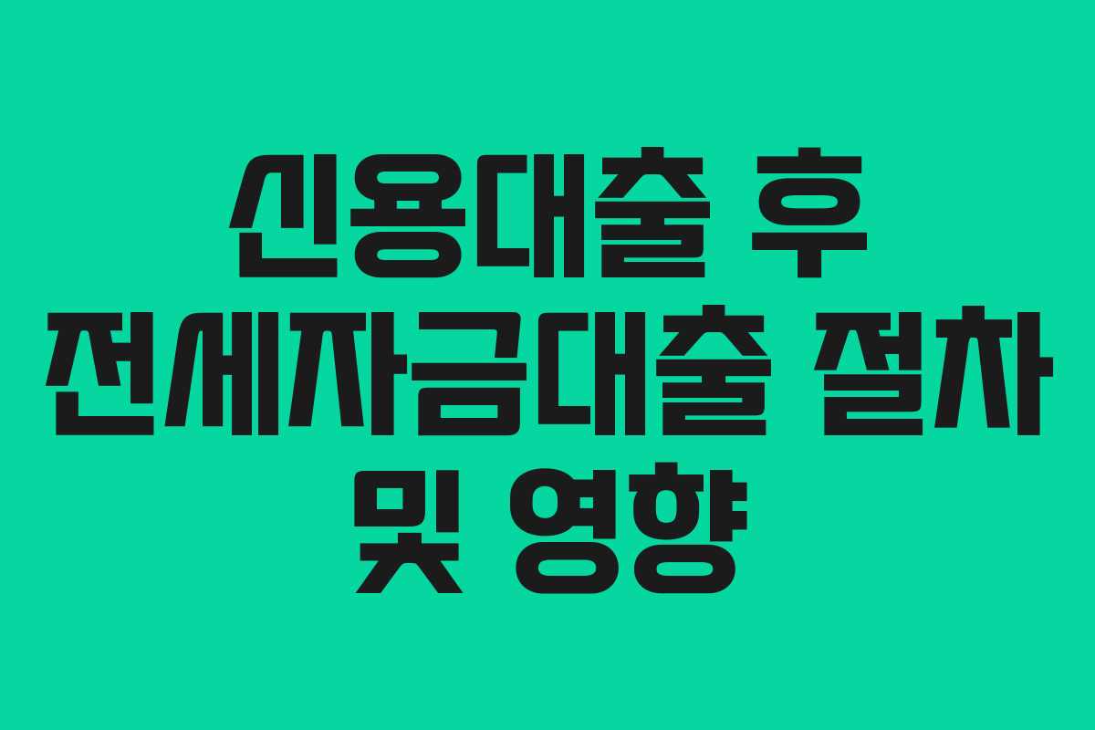 신용대출과 전세자금대출의 순서 및 영향을 이해하는 것은 대출을 계획하는 데 중요한 요소입니다. 이 글에서는 신용대출 후 전세자금대출을 받는 과정과 주의사항에 대해 자세히 다루겠습니다.