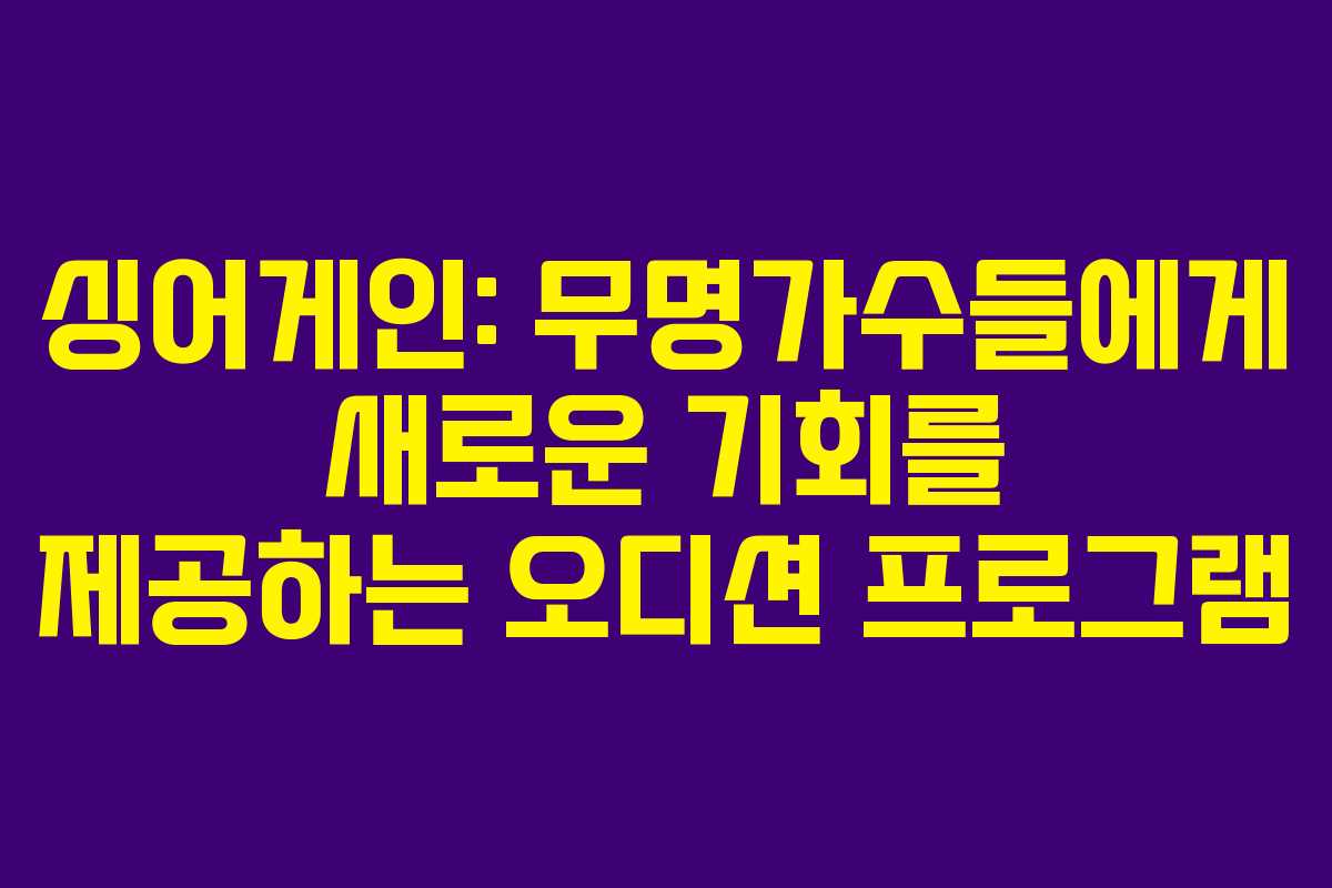 싱어게인은 무명가수들에게 꿈을 이룰 수 있는 기회를 제공하는 오디션 프로그램입니다. 시즌 1과 2에서 큰 호응을 얻었고, 현재 시즌 3이 방영 중입니다. 이 프로그램은 많은 가수들에게 터닝포인트가 되어 새로운 삶을 맞이하게 했습니다.