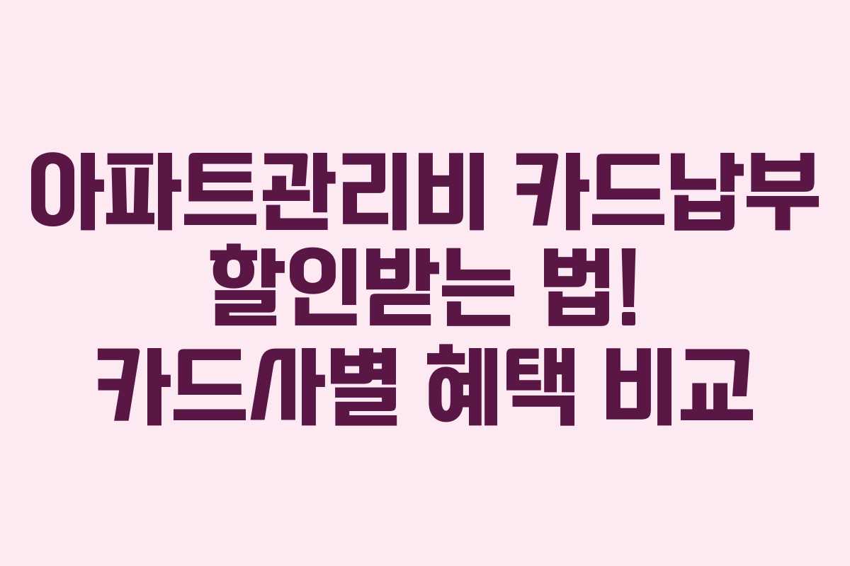 아파트 관리비를 효율적으로 절약하기 위해 각 카드사의 혜택을 비교하는 것이 중요합니다. 주요 카드사들의 관리비 할인 혜택을 살펴보면 다음과 같습니다.