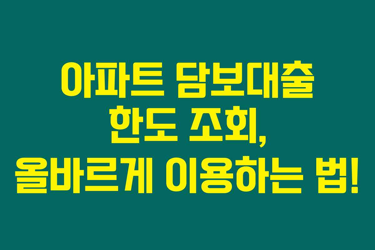 아파트 담보대출 한도 조회, 올바르게 이용하는 법!