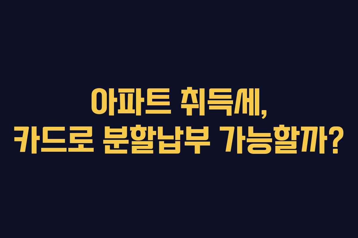 아파트 취득세를 카드로 납부할 수 있는 방법과 관련 혜택에 대해 알아보겠습니다. 최근 위택스 시스템을 통해 카드 결제가 가능해지며, 분할납부 신청도 가능해졌습니다. 이에 따라 세금 납부에 대한 부담을 줄일 수 있는 다양한 옵션을 제공하고 있습니다.
