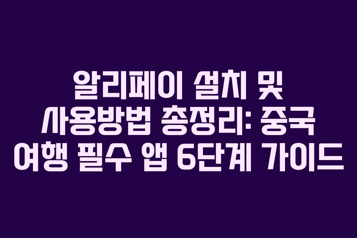 알리페이 설치 및 사용방법 총정리: 중국 여행 필수 앱 6단계 가이드