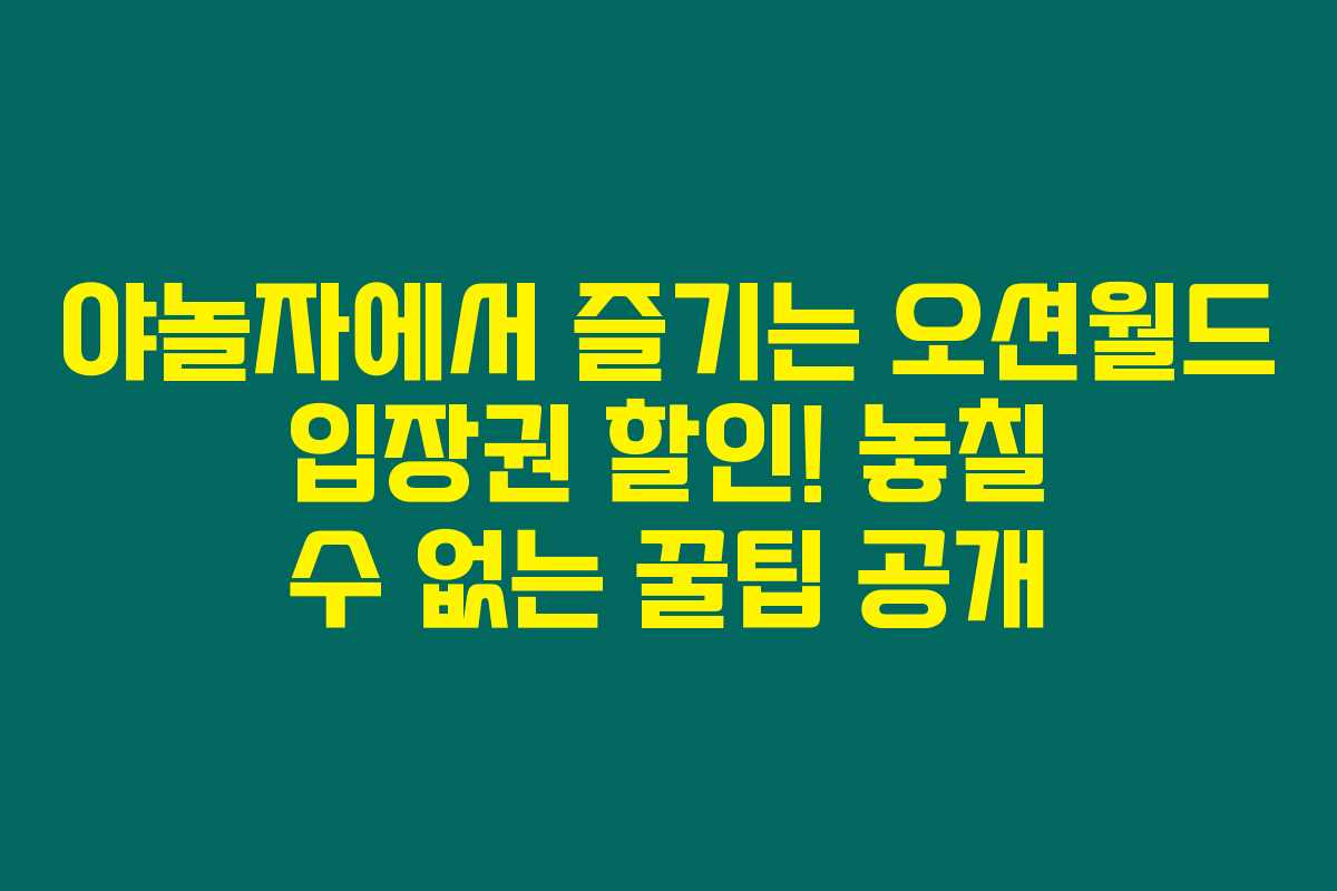 여름을 맞아 오션월드에서 시원한 물놀이를 계획하고 계신가요? 그러면 꼭 알아야 할 야놀자 오션월드 입장권 할인 정보를 준비했어요. 유명한 워터파크의 입장권을 더욱 똑똑하게 이용하는 방법에 대해 알아보겠습니다. 오션월드에서 멋진 물놀이를 꿈꾸는 분이라면 주목하세요!