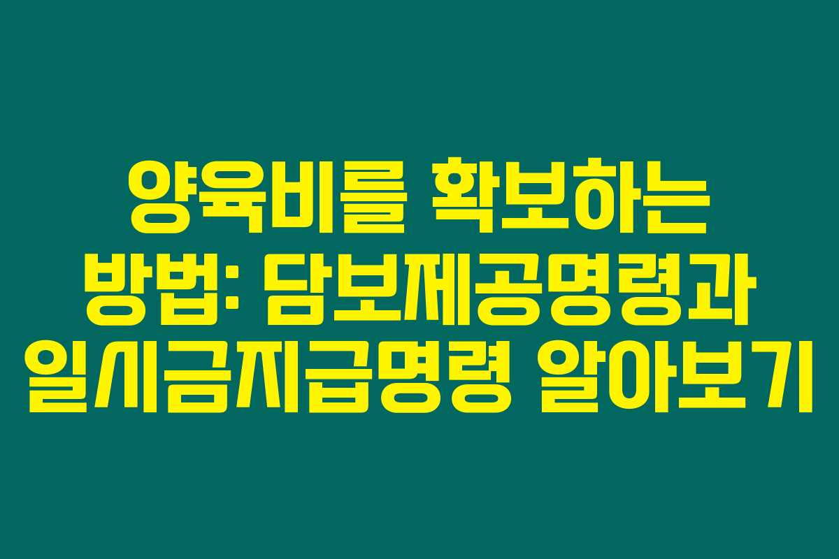 제가 알아본 바로는 양육비 지급의 문제는 많은 부모들이 겪는 어려움 중 하나입니다. 그러다 보니, 이러한 문제를 해결하기 위한 다양한 법적 절차가 마련되어 있습니다. 특히, 양육비와 관련해 핵심적인 역할을 하는 두 가지 제도인 담보제공명령과 일시금지급명령에 대해 자세히 설명드리겠습니다. 아래를 읽어보시면 이 두 가지 제도가 어떻게 작동하는지, 그리고 이를 활용하는 방법에 대해 알 수 있을 것입니다.
