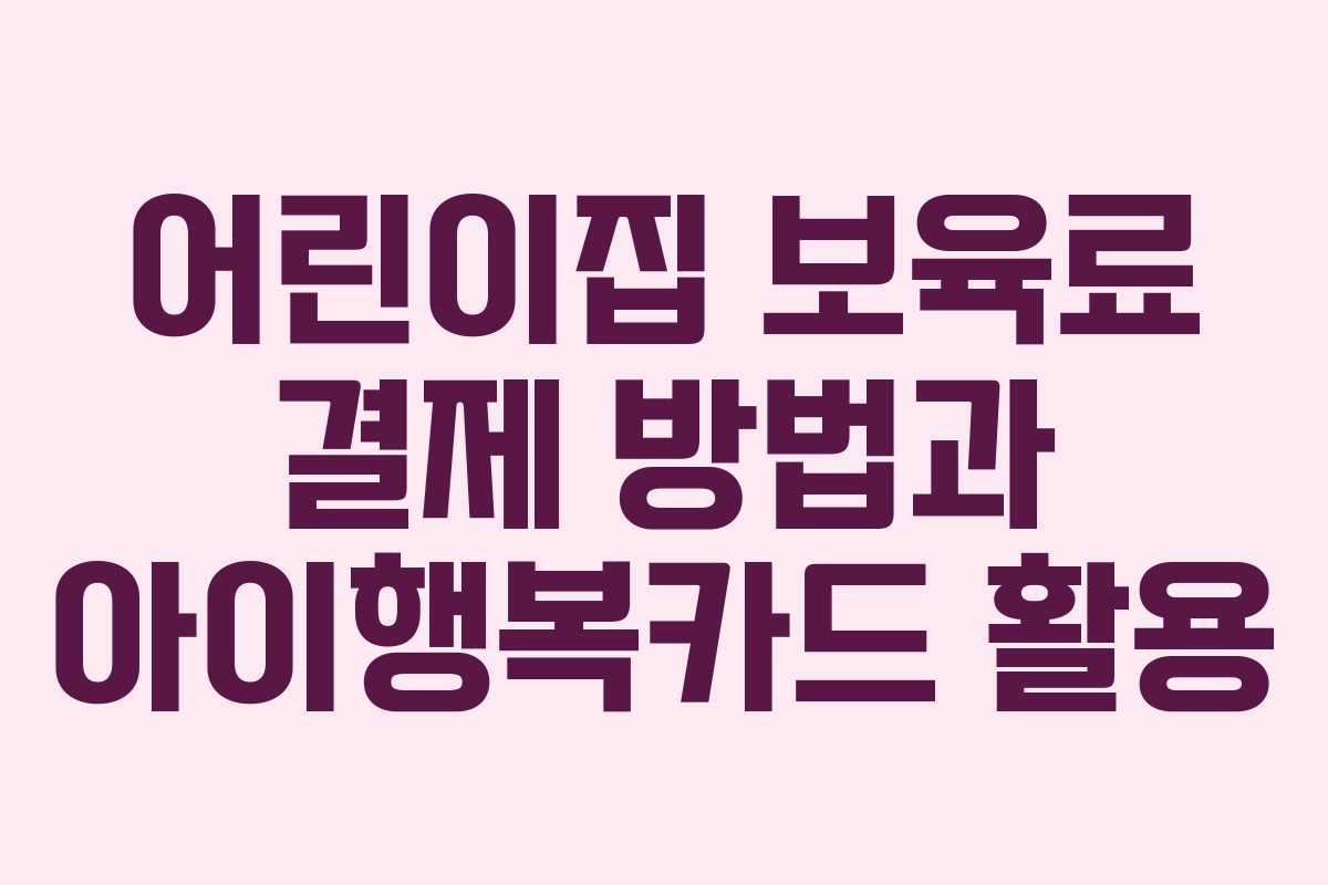 어린이집 보육료 결제는 여러 가지 방법으로 진행할 수 있으며, 부모님들에게는 편리한 옵션이 많습니다. 이번 글에서는 ARS 전화 결제 방법과 아이행복카드의 활용에 대해 자세히 알아보겠습니다.