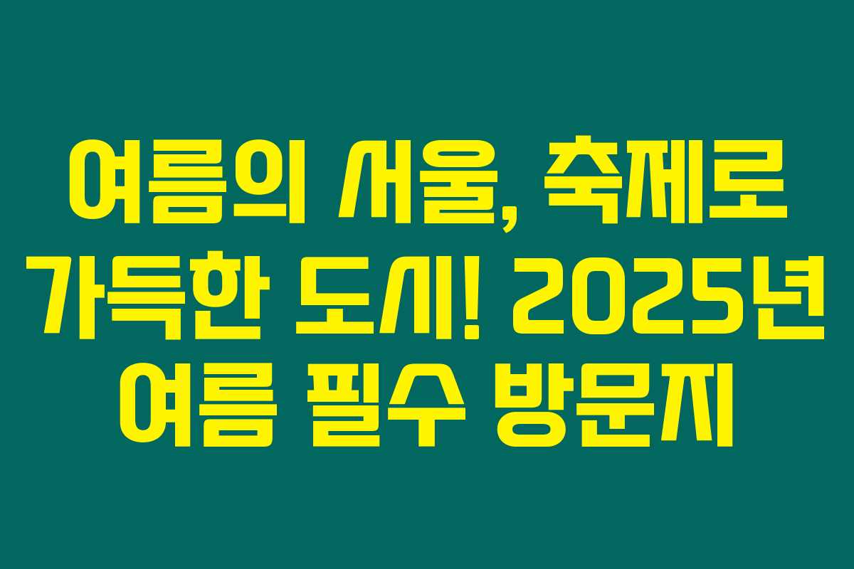 여름철 서울을 계획하고 계신가요? 아니면 무더위를 피해 어떤 즐거움을 찾아야 할지 막막하신가요? 아래를 읽어보시면 2025년 6월부터 8월까지 서울에서 즐길 수 있는 다양한 축제와 명소에 대해 알게 될 거예요. 문화와 레저가 어우러진 서울의 여름은 결코 놓쳐서는 안 될 기회랍니다!