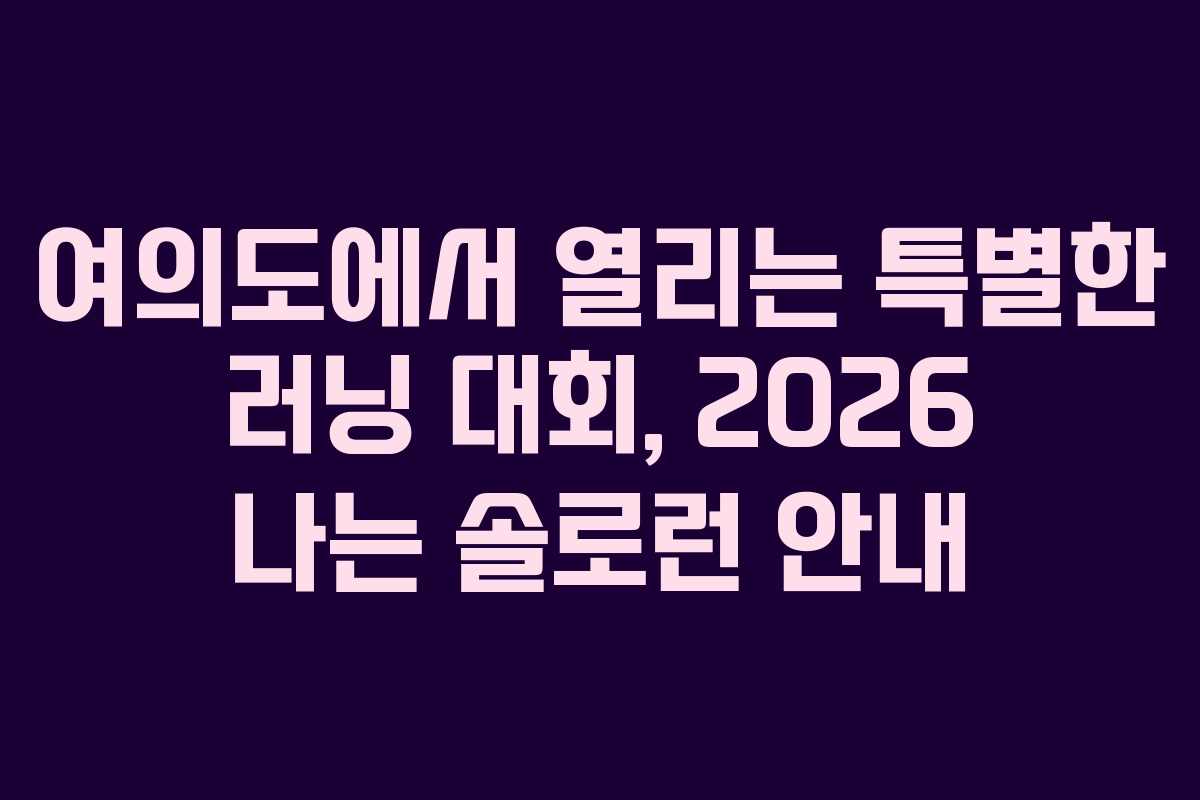 2026년 5월 9일, 서울 여의도공원에서 특별한 러닝 대회인 ‘2026 나는 솔로런’이 개최됩니다. 이 대회는 SBS Plus의 인기 프로그램인 ‘나는 솔로’와 연계된 이벤트로, 많은 러너들이 참여할 기회를 제공합니다. 본 대회에 대한 자세한 정보와 참가 방법을 안내하겠습니다.