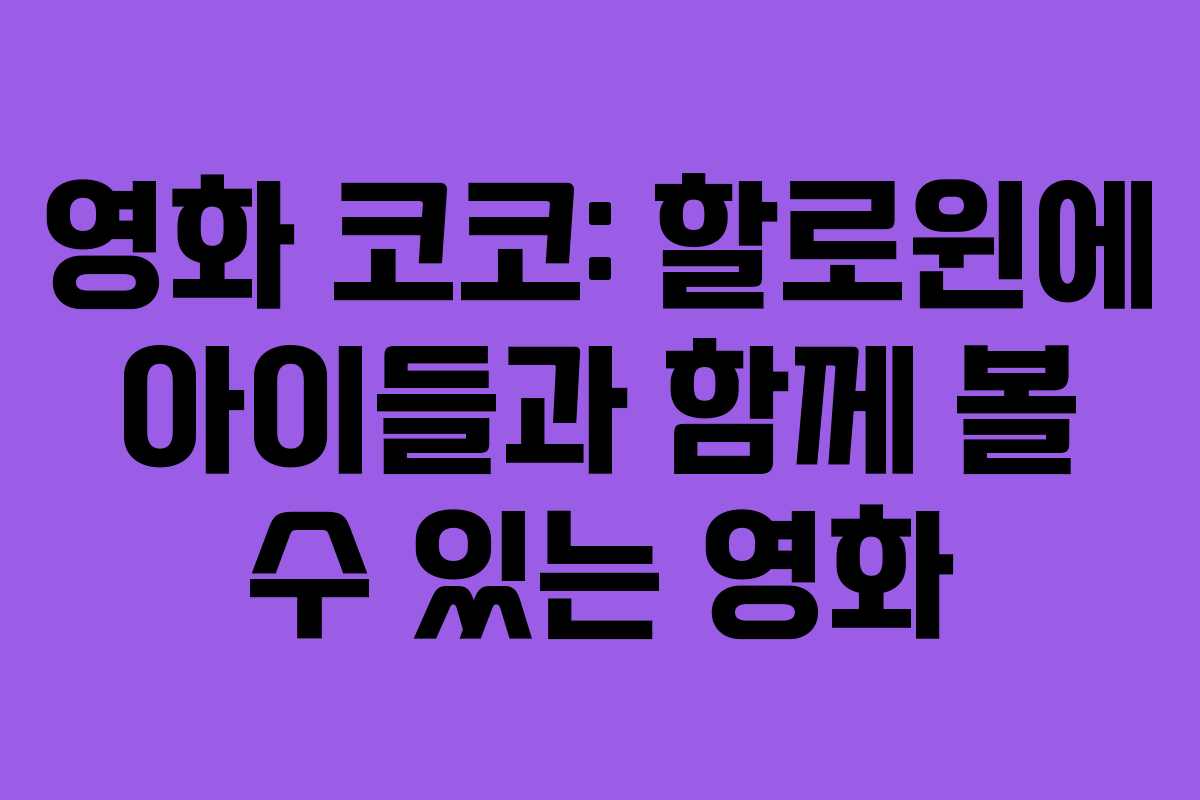 할로윈이 다가오면서 어떤 영화를 가족과 함께 감상할지 고민하는 부모님들이 많습니다. 많은 할로윈 영화들이 무서운 장면으로 가득하지만, 오늘 소개할 영화 코코는 가족 모두가 즐길 수 있는 따뜻한 이야기로 가득 차 있습니다. 알록달록한 색감과 감동적인 스토리는 아이들에게도 큰 기쁨이 될 것입니다.