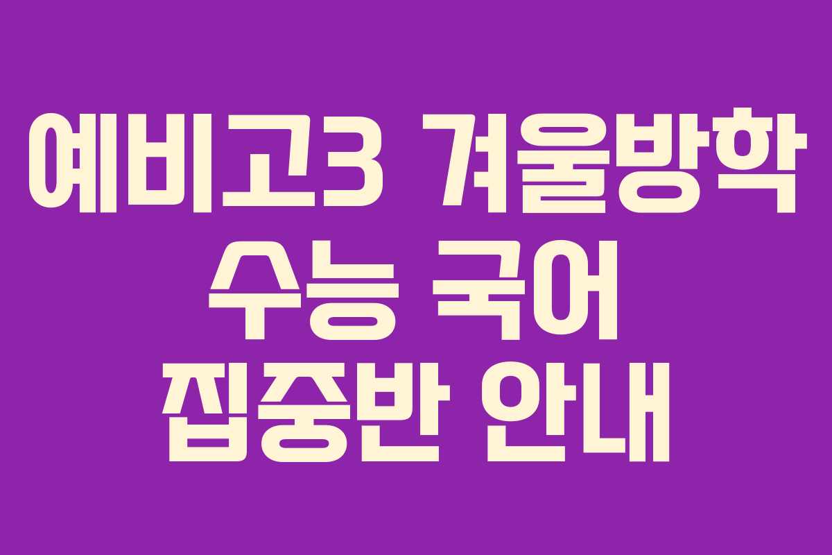 2024년 1월과 2월에 진행되는 예비고3 겨울방학 수능 국어 집중반에 대해 안내드립니다. 이번 수업은 소수 인원으로 운영되며, 학생들이 개별적으로 부족한 점을 보완할 수 있도록 구성되었습니다.