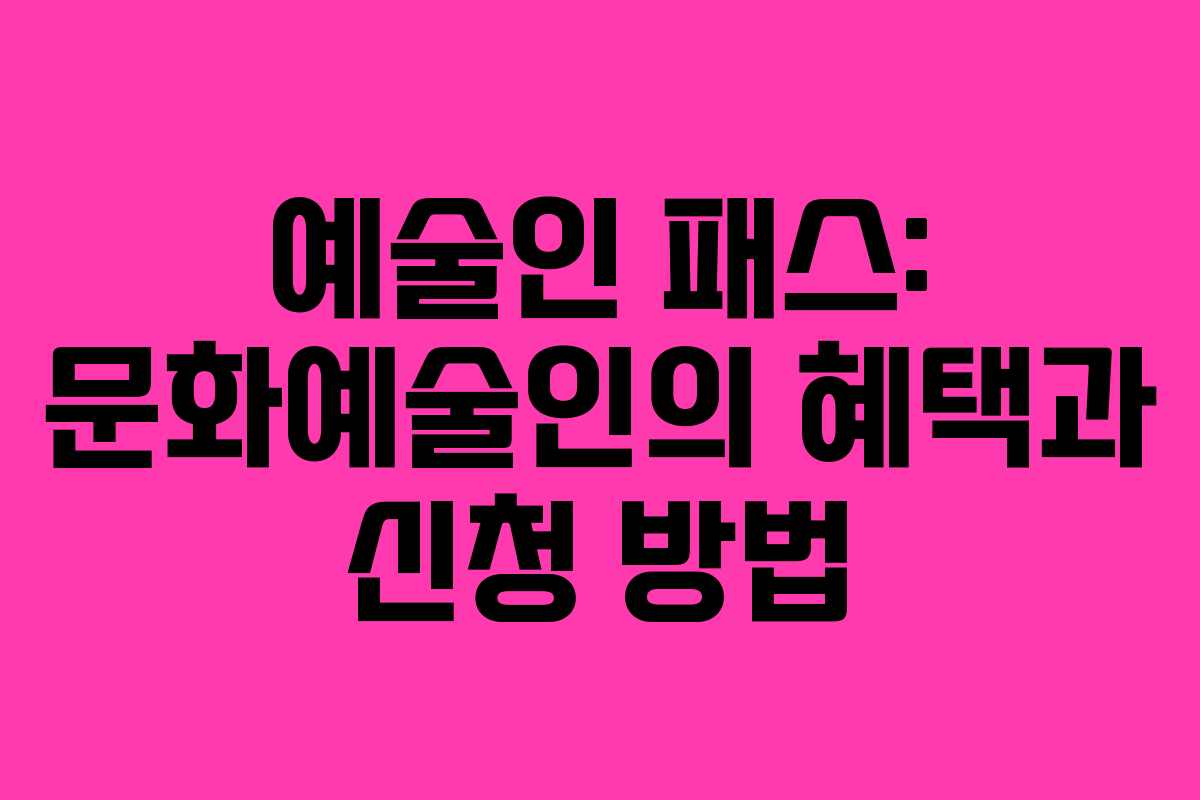 예술인 패스는 문화예술인들에게 다양한 혜택을 제공하는 제도로, 각종 문화 예술 기관에서 요금 할인 혜택을 받을 수 있도록 지원합니다. 이번 글에서는 예술인 패스의 개념, 신청 자격, 신청 방법에 대해 자세히 알아보겠습니다.