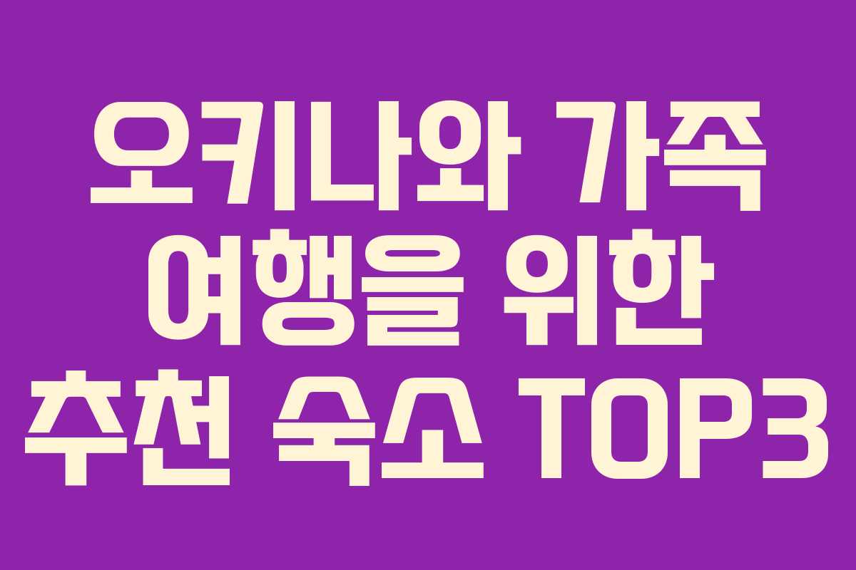 오키나와는 가족 여행을 위한 최고의 여행지이며, 다양한 숙소 옵션이 마련되어 있습니다. 어린이와 함께 여행할 경우 수영장, 키즈 클럽, 키즈 메뉴 제공 여부 등을 고려하는 것이 중요합니다. 가족 모두가 만족할 수 있는 숙소를 선택하여 잊지 못할 오키나와 여행을 즐겨보세요!