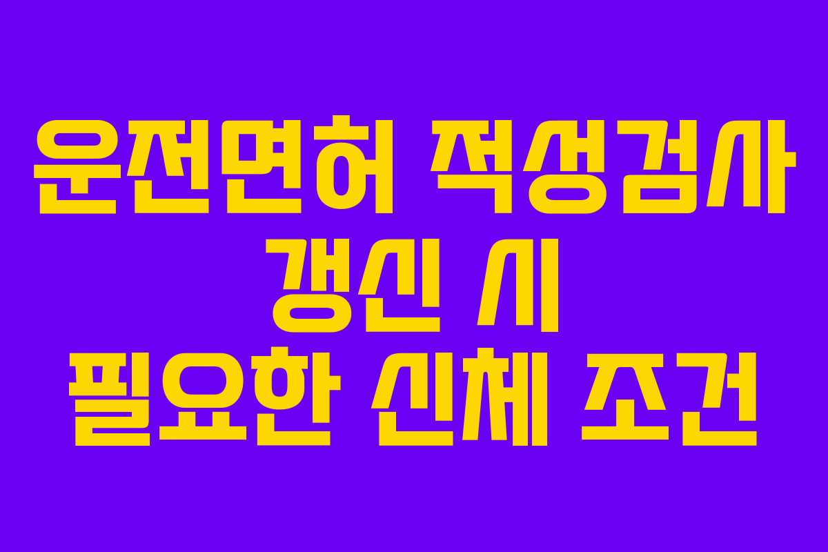 운전면허를 가진 분들에게 적성검사는 필수적인 과정입니다. 갱신 시기마다 신체 조건을 검토하는 것은 매우 중요하며, 이를 통해 안전한 운전이 가능해집니다. 최근의 경험을 바탕으로 필요한 신체 조건과 주의사항을 자세히 살펴보겠습니다.