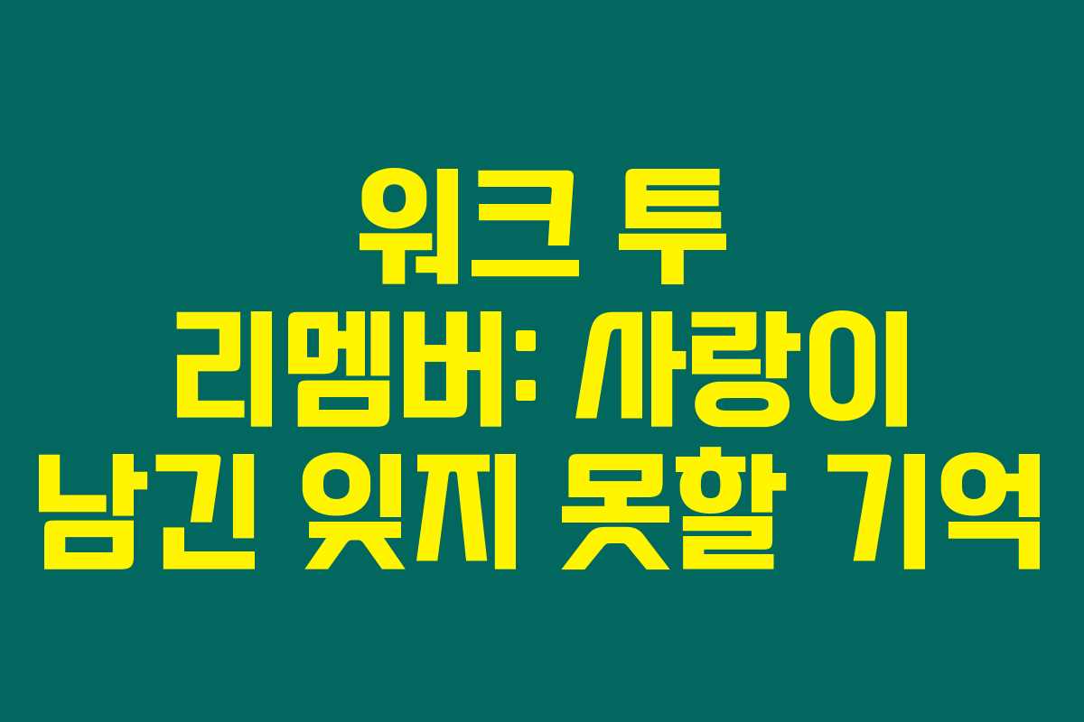 제가 알아본 바로는, 워크 투 리멤버는 사랑이란 무엇인지 깊이 있게 묻는 감동적인 영화입니다. 랜든과 제이미의 애틋한 이야기를 통해 사랑의 본질을 다시금 느낄 수 있었어요. 아래를 읽어보시면 이 작품의 줄거리, 캐릭터, 그리고 제가 느꼈던 감정들을 상세히 알아보실 수 있습니다.