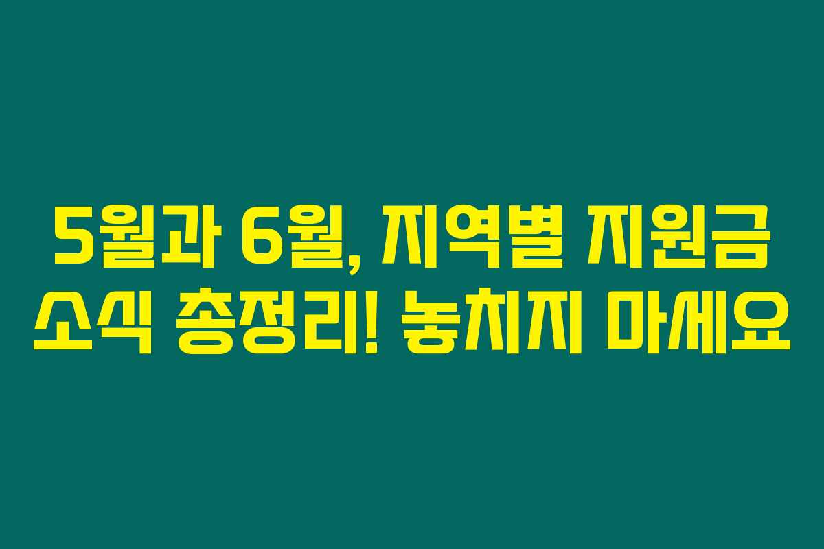 마무리하자면, 5월과 6월 동안 진행되는 지역별 지원금은 어려움을 겪고 있는 주민들에게 실질적인 도움이 될 것으로 보여요. 지역 경제 회복을 위한 이번 지원금 모두 참여하여 함께 상생할 수 있기를 바랍니다.