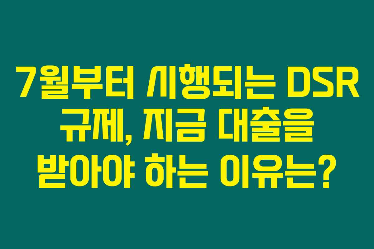 제가 알아본 바로는, 올해 하반기부터 대출 규제가 대폭 변화할 예정입니다. 특히 2025년 7월부터 시행되는 ‘강화된 DSR 규제’는 많은 사람들에게 큰 영향을 미칠 것으로 보입니다. 아래를 읽어보시면, 왜 지금이 대출을 받을 최적의 시점인지, 그리고 DSR 규제에 대한 구체적인 이해를 돕는 내용이 담겨 있습니다.