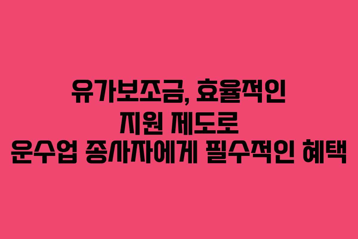 유가보조금, 효율적인 지원 제도로 운수업 종사자에게 필수적인 혜택