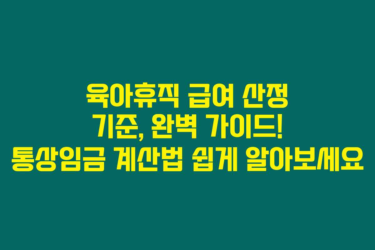 이 계산법이 도움이 될 거예요. 통상임금을 정확하게 아는 것만으로도 육아휴직 급여를 잘 챙길 수 있답니다.