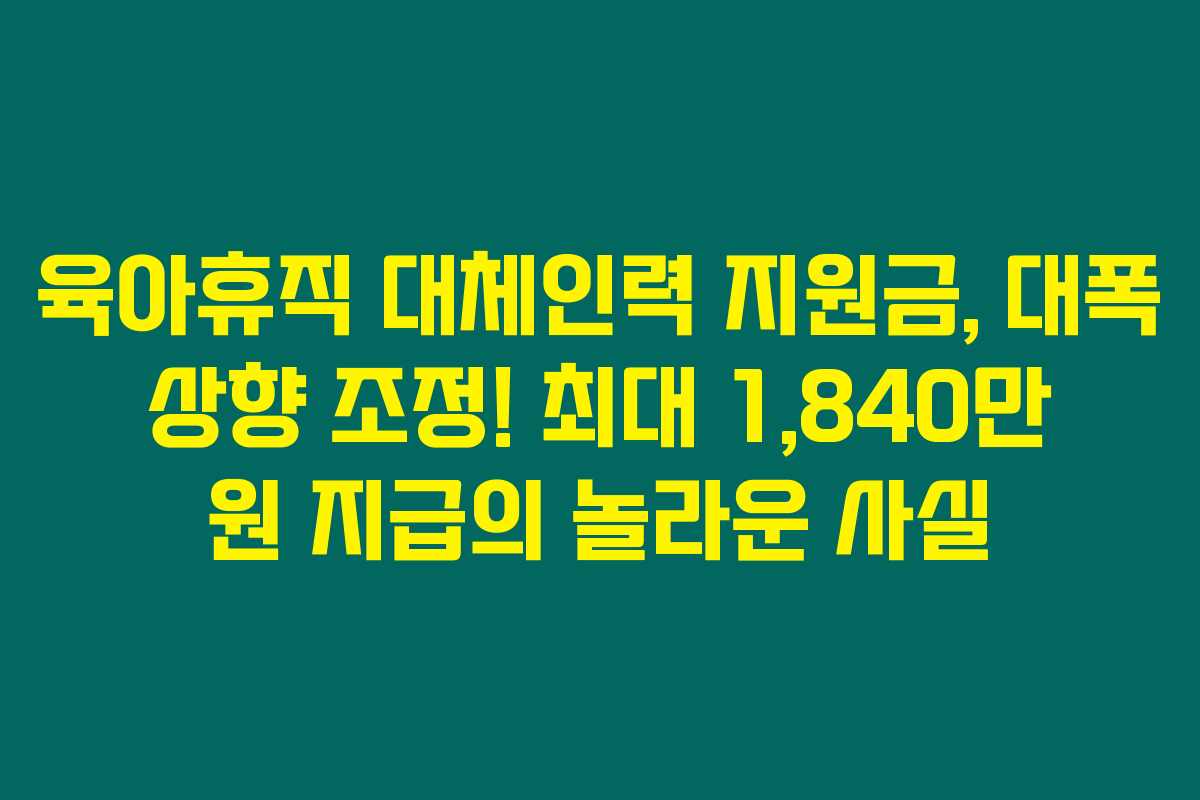 제가 직접 체크해본 바로는 육아휴직 대체인력 지원금이 올해부터 크게 늘어났습니다. 이제 연 최대 1,840만 원이 지급된다는 소식이에요. 이 지원금은 육아휴직 중에 발생하는 인력 공백을 해소하고, 근로자들이 더 편안하게 육아휴직을 사용할 수 있도록 도와주는 제도입니다. 아래를 읽어보시면 2025년 변경 사항과 신청 방법, 그리고 혜택에 대해 더 자세히 알 수 있습니다.