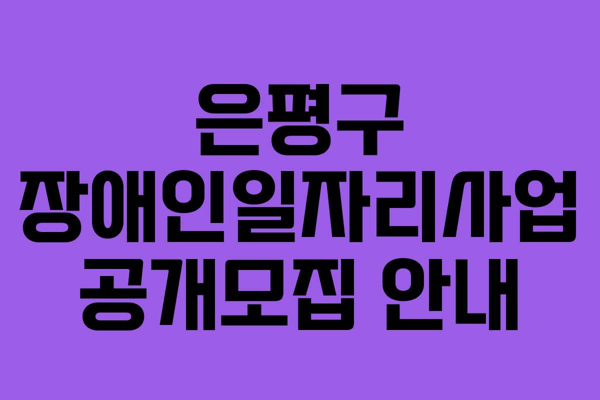 은평구에서는 장애인의 사회참여를 확대하고 소득을 보장하기 위해 「2025년 장애인일자리사업」을 진행합니다. 이번 사업에서는 일반형 일자리(전일제 및 시간제)의 참여자를 공개 모집하오니 많은 관심 바랍니다.